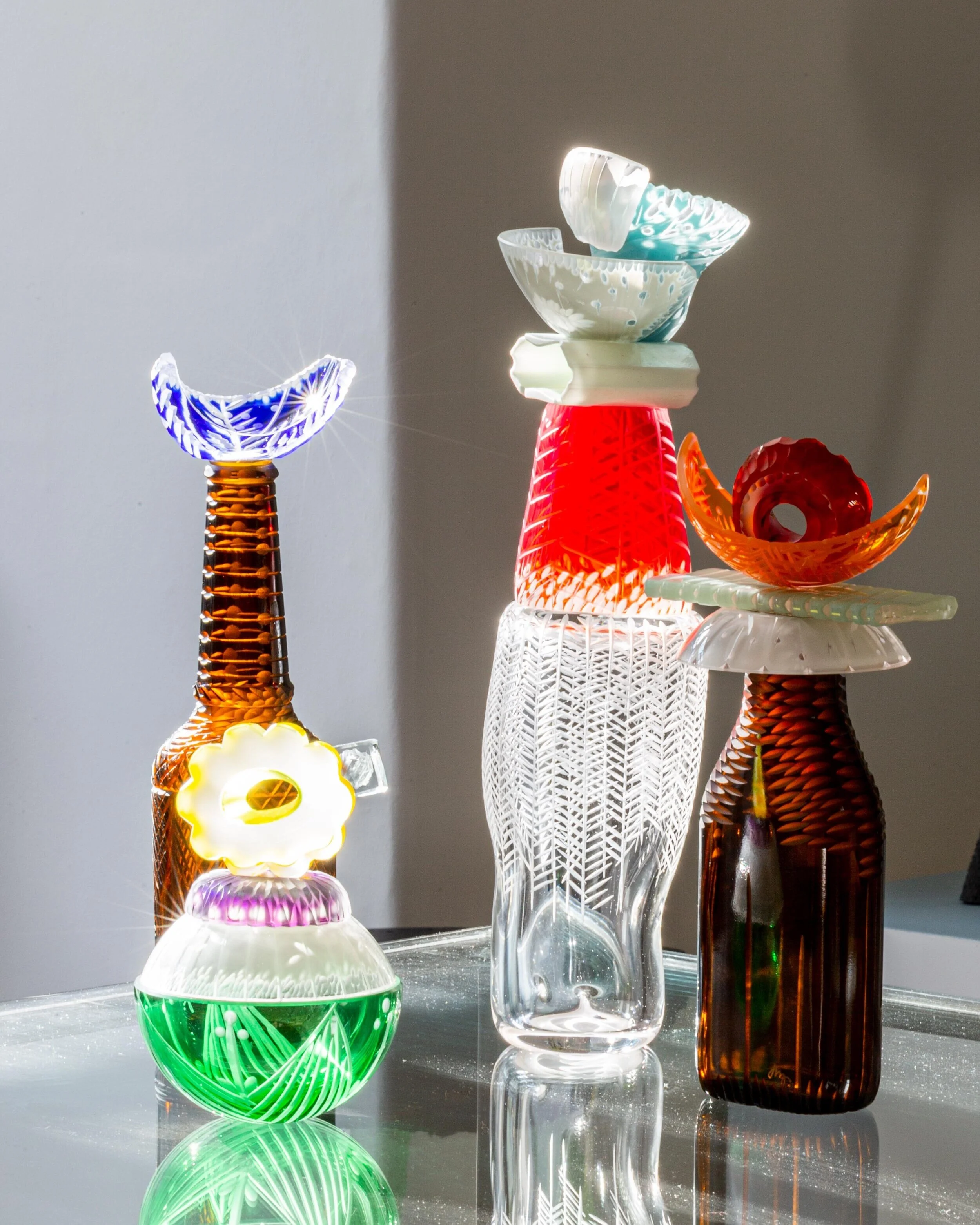 Every glass piece is brought to life by deconstructing discarded glass, which has been collected and donated by the Royal Edinburgh Hospital Community. I have reconfigured the elements through play and embellished the decadent layers using local heritage hand-cutting techniques. Playing with light brings the beautiful shadows to life whilst manifesting the magic of a second chance. In the end, each piece is a poetic act of rebellion; a resilient rebel that embodies a symbol of hope.
