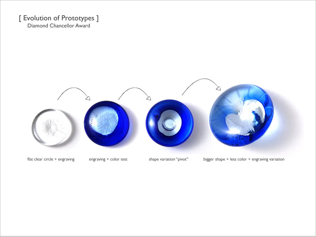 We had the opportunity to apply for the open brief competition. This entailed designing a series of glass pieces to be handed out for the Chancellor’s Fellowship Award as prizes.